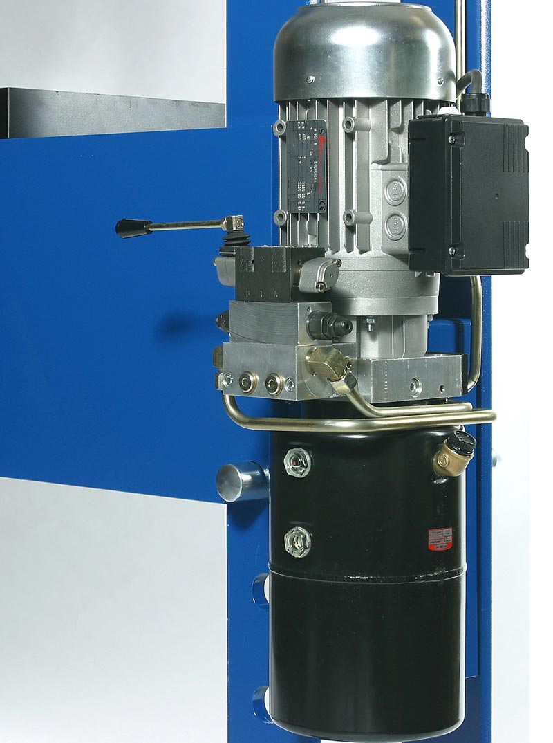 Dependiendo de la versión, las prensas SEFAC pueden estar equipadas con una bomba manual de aproximación rápida neumática o con una bomba electrohidráulica de 1 o 2 velocidades.