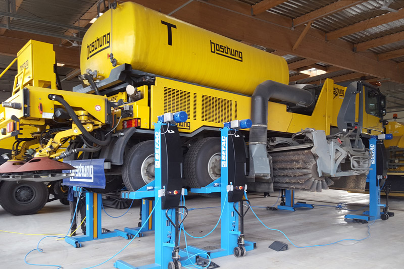 SEFAC a conçu des colonnes de levage mobiles pour véhicules lourds avec une capacité de levage de 10t par colonne.